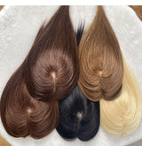 Le postiche se fond parfaitement avec les cheveux grâce à des cheveux humains et une base fine.